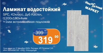 Ламинат White Box 32кл. Дуб Снежный (2613) 1285х192х8мм, Фаска 4V (9) ПРОМО