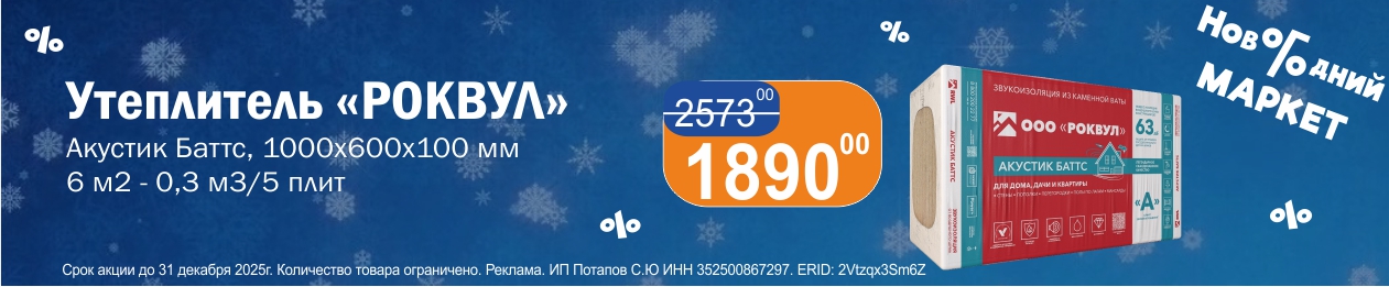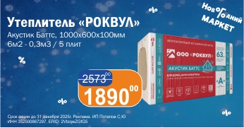 Утеплитель "Роквул" Акустик Баттс 1000х600х50мм / 6м2 - 0,3м3 / 10 плит