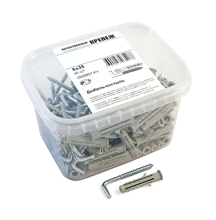 Универсальный дюбель-костыль используется для монтажа конструкций к полнотелым и полым стеновым материалам. Такой крепеж подойдет для подвешивания светильников, картин, зеркал, сквозного крепления легких конструкций и т.д. Дюбели выполнены из высокопрочного нейлона и укомплектованы стальными крюками.