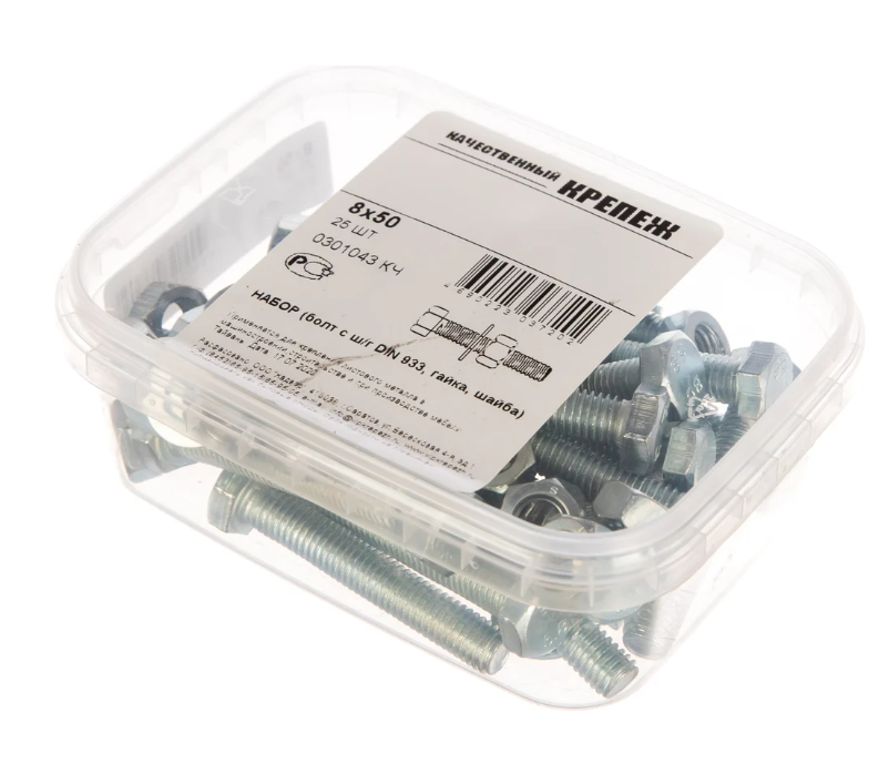 Болт с шайбой и гайкой DIN933 M8х50 (25шт) 0301043 КЧ