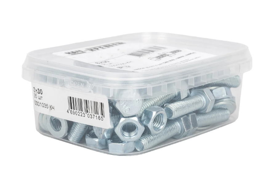 Болт с шайбой и гайкой DIN933 M8х30 (35шт) 0301035 КЧ