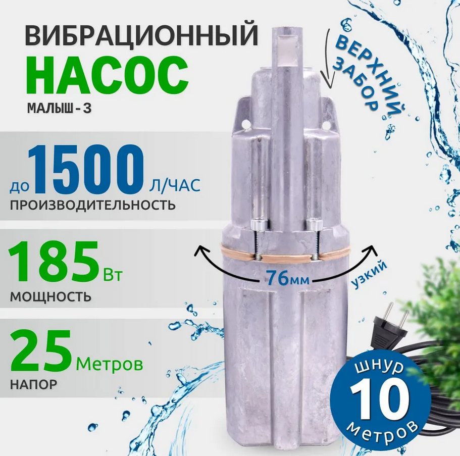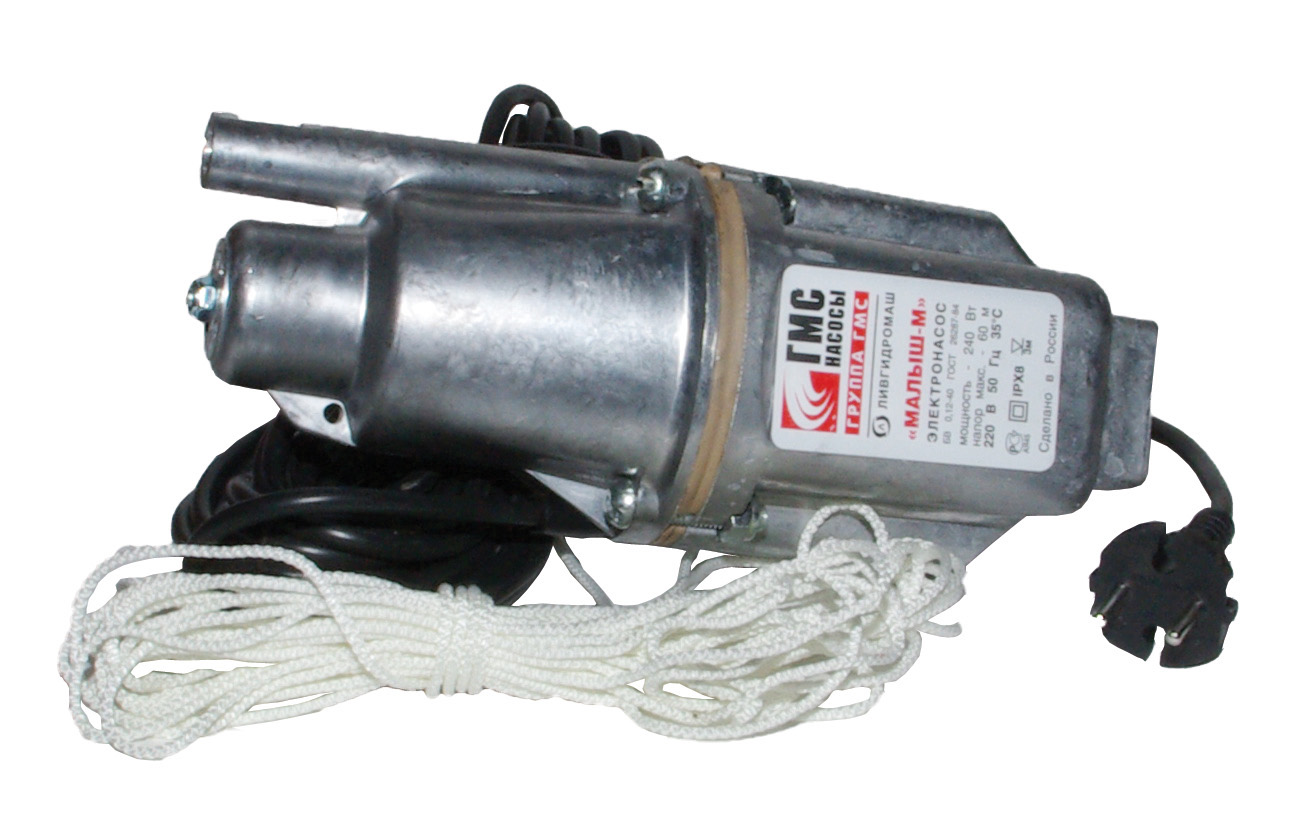 Насос вибрационный "МАЛЫШ-М" шнур 10 м верхний забор 220 Вт (произ-во з.Ливгидромаш Россия) /019/