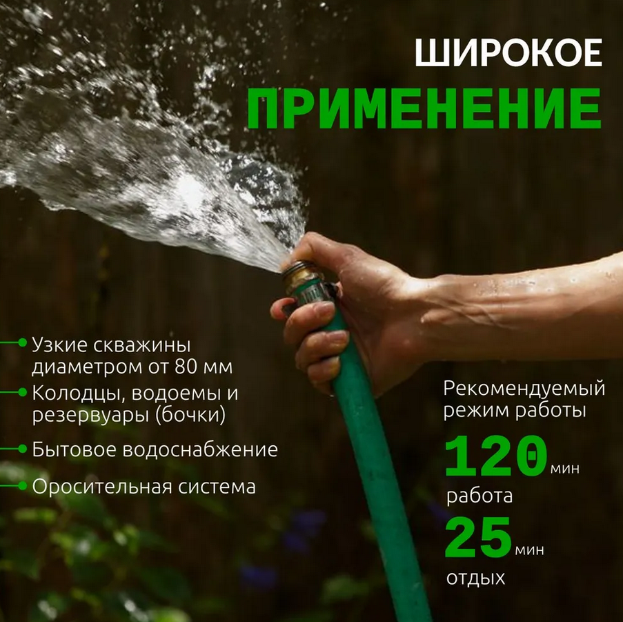 Насос для воды Малыш 3 прекрасно подойдёт для подъема пресной воды из различных открытых источников (озёр, рек, прудов), а также скважин и колодцев глубиной до 20 метров.