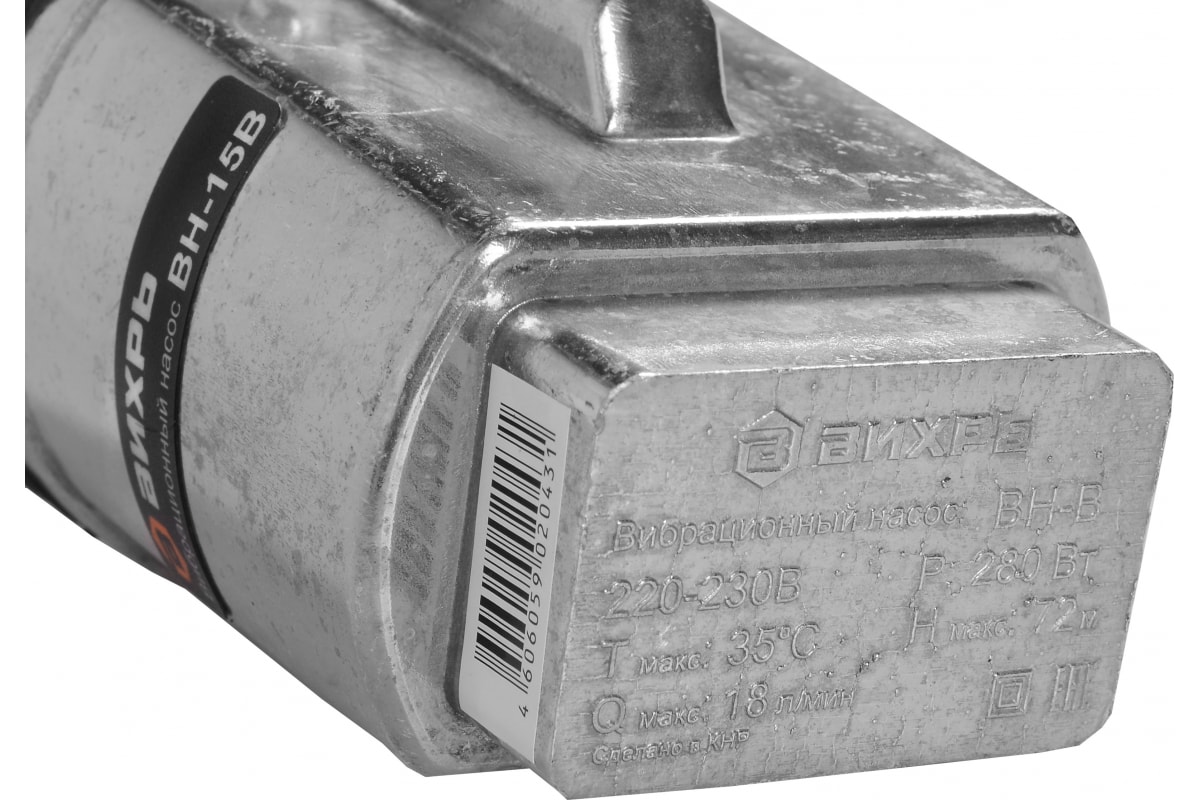 Насос вибрационный "ВИХРЬ" шнур 15 м верхний забор 280 Вт ВН-15В 68/8/2