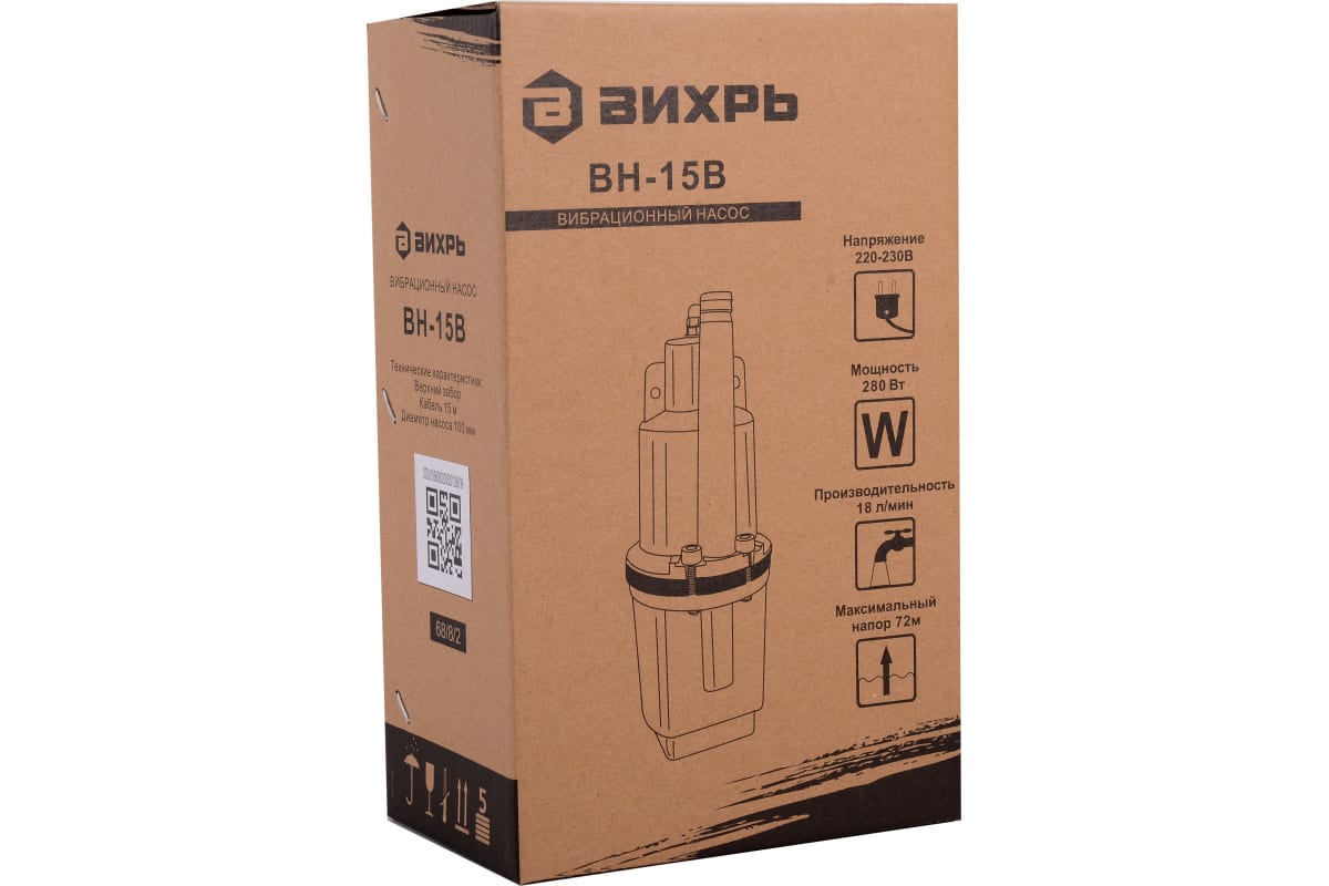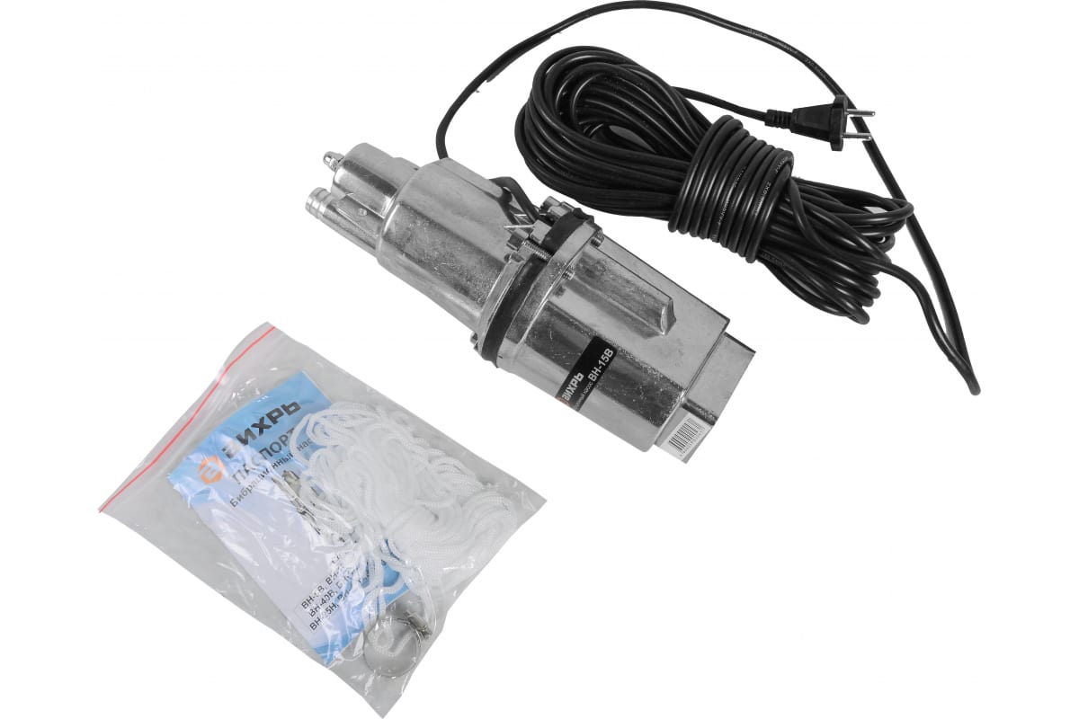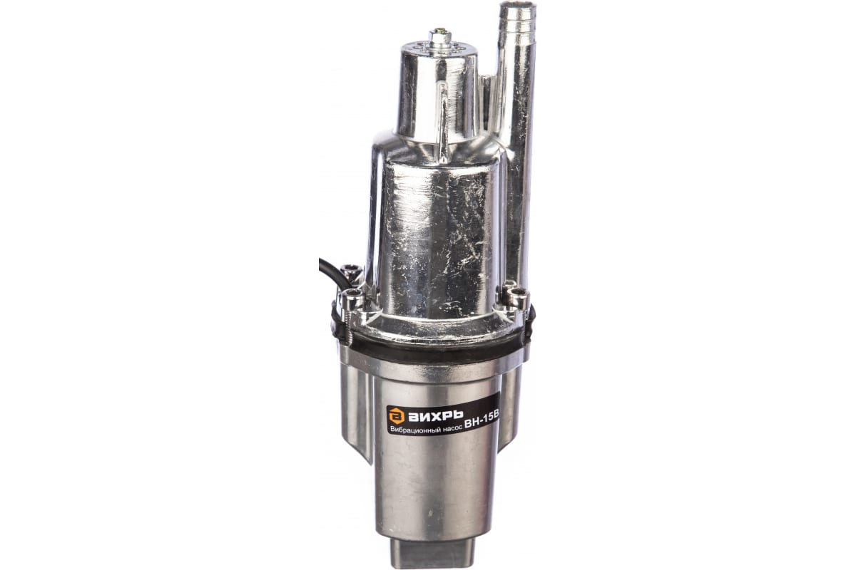 Вибрационный насос Вихрь ВН-15В 68/8/2 - погружной аппарат с производительностью 18 л/мин. Модель характеризуется напором 72 метра. Опускается в колодец с помощью троса на глубину не более 3 метров. Насос используется для полива сада и подачи чистой воды.