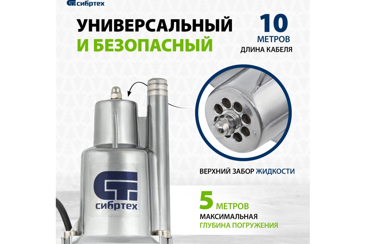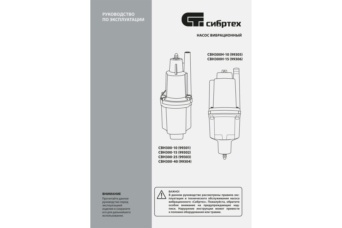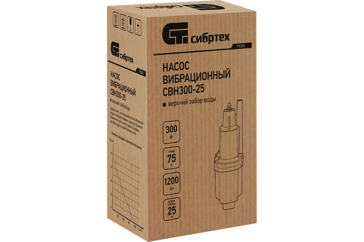 Насос вибрационный "Сибртех" шнур 25 м верхний забор, 300 Вт, 1200 л/ч СВН300-25 арт. 99303