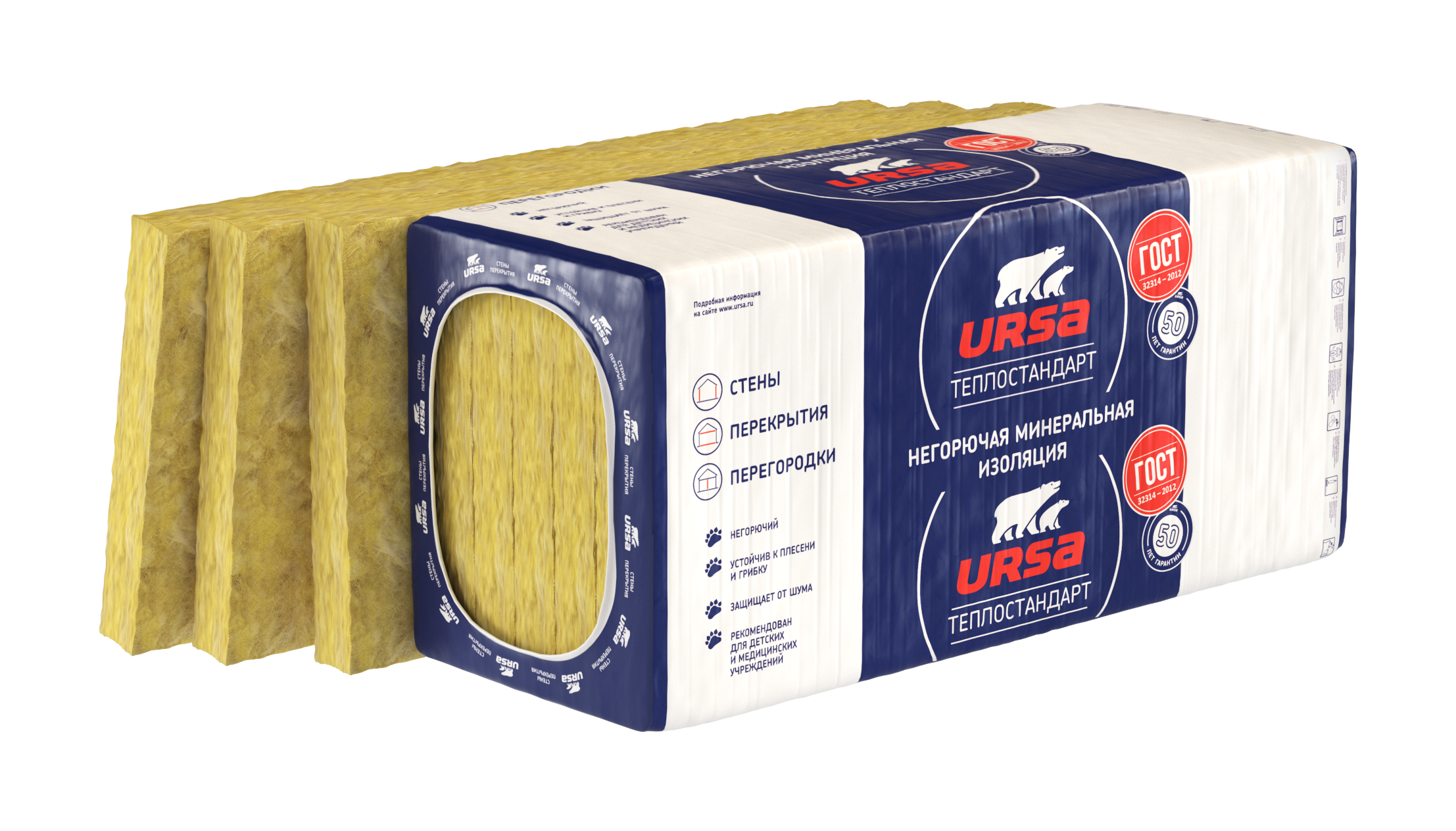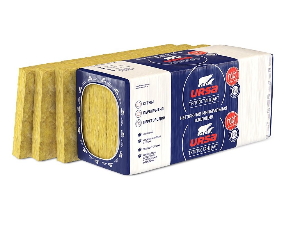 Утеплитель "Ursa" ТеплоСТАНДАРТ плита 1230-610-50мм / 0,45м3 - 9,0м2 (12 шт) / 2096119