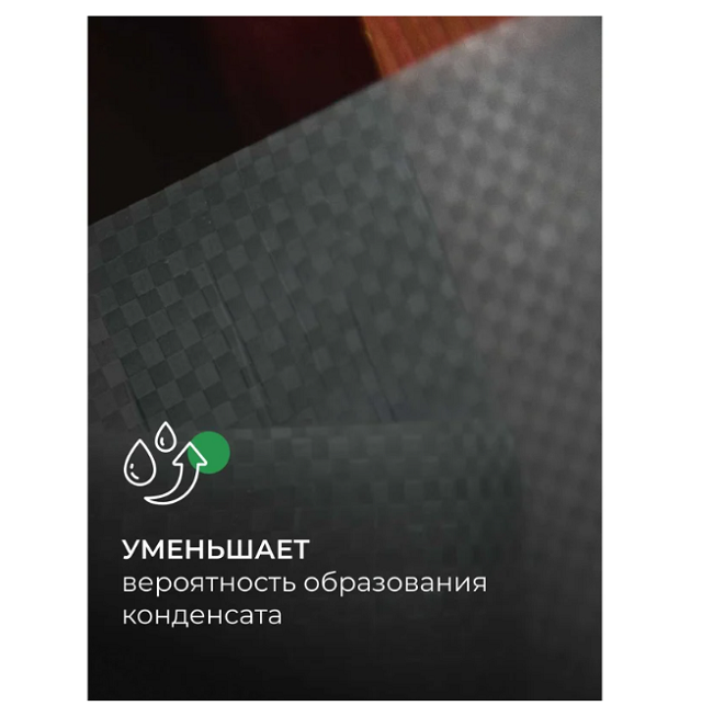 Особая матовая поверхность пленки на 10% уменьшает вероятность образования конденсата на поверхности пленки при перепадах температур.
