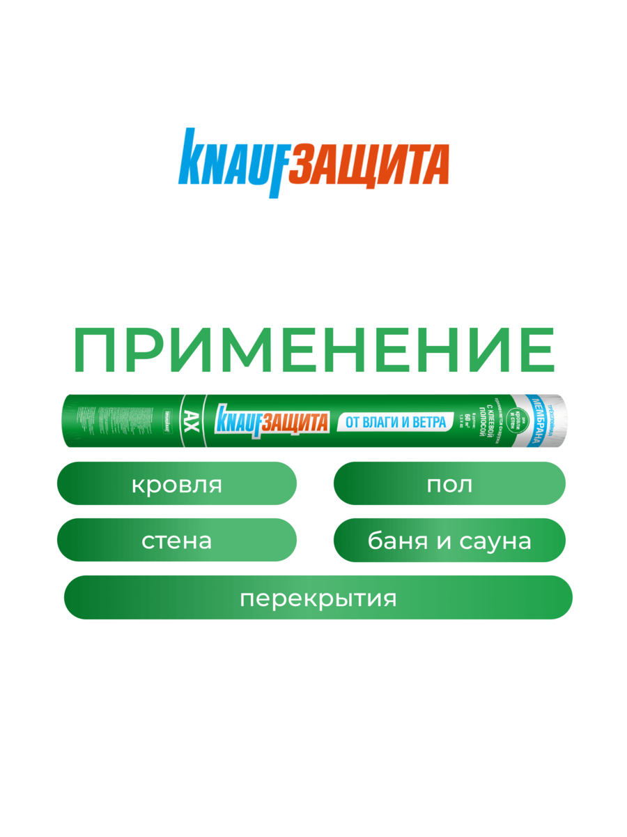 КНАУФ Защита AX – влаго- и ветрозащитная супердиффузионная мембрана.