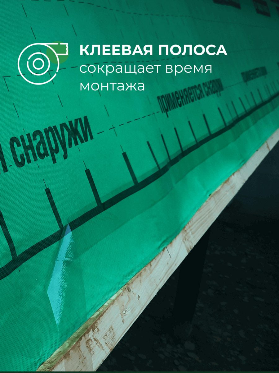 Это трехслойный материал высокой прочности, состоящий из микропористого водонепроницаемого слоя, скрепленного с двух сторон нетканым полипропиленовым полотном. Оснащен клеевой полосой для удобства и сокращения времени монтажа. Устойчив к воздействию плесени и бактерий. Высокая паропроницаемость способствует «выходу» из строительных конструкций излишней влаги.