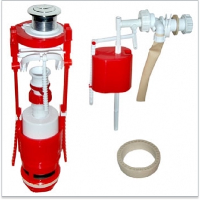2-режимный кнопочный универсальный механизм слива "СБ2" в комплекте с боковым наполнительным клапаном Нпр (противодавления). Кнопка цвета Хром.