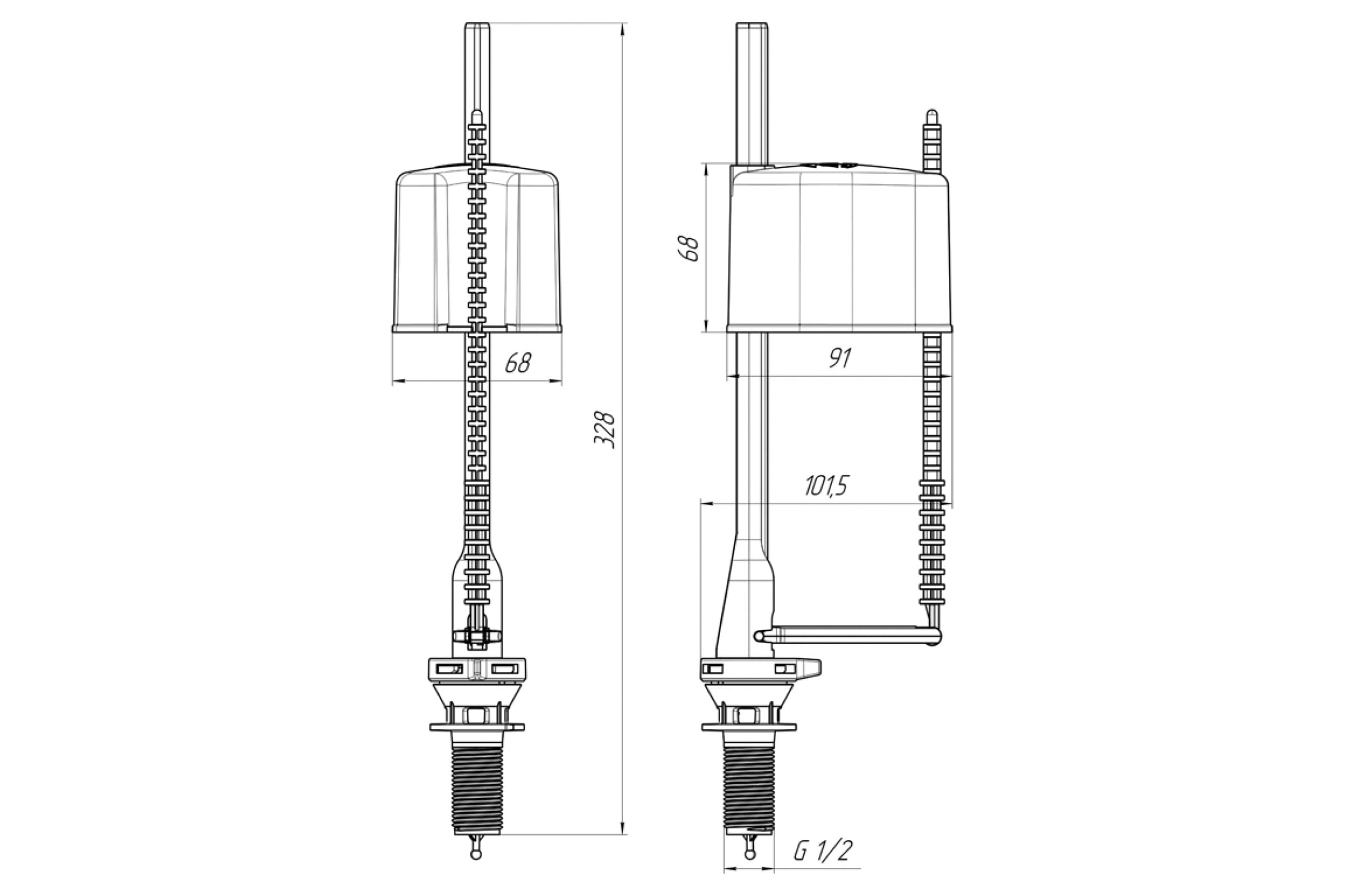 Наливной механизм бачка унитаза с нижней подводкой и пластиковой резьбой диаметром 1/2" эконом.
