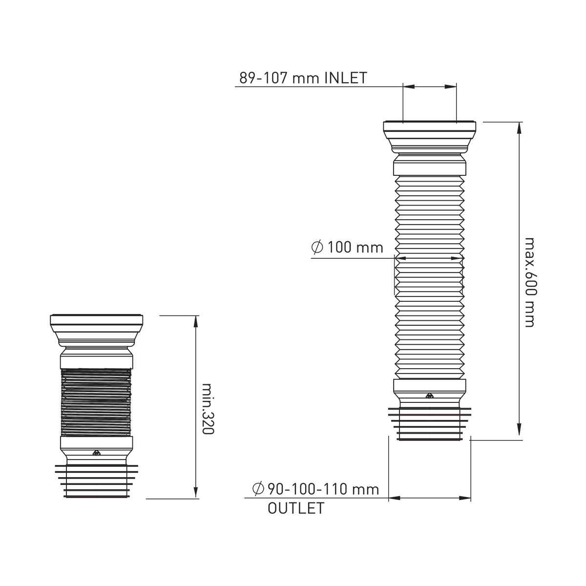 Диаметр подключения к унитазу - 89-107 мм.