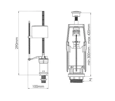 Размеры: 280-400 мм, наружная резьба 2"; 290х100 мм, наружная резьба 1/2".
