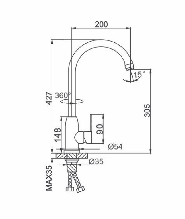 Поворотный излив оснащен аэратором, который существенно понижает уровень шума. Длина излива подходит для большинства бытовых кухонных моек.