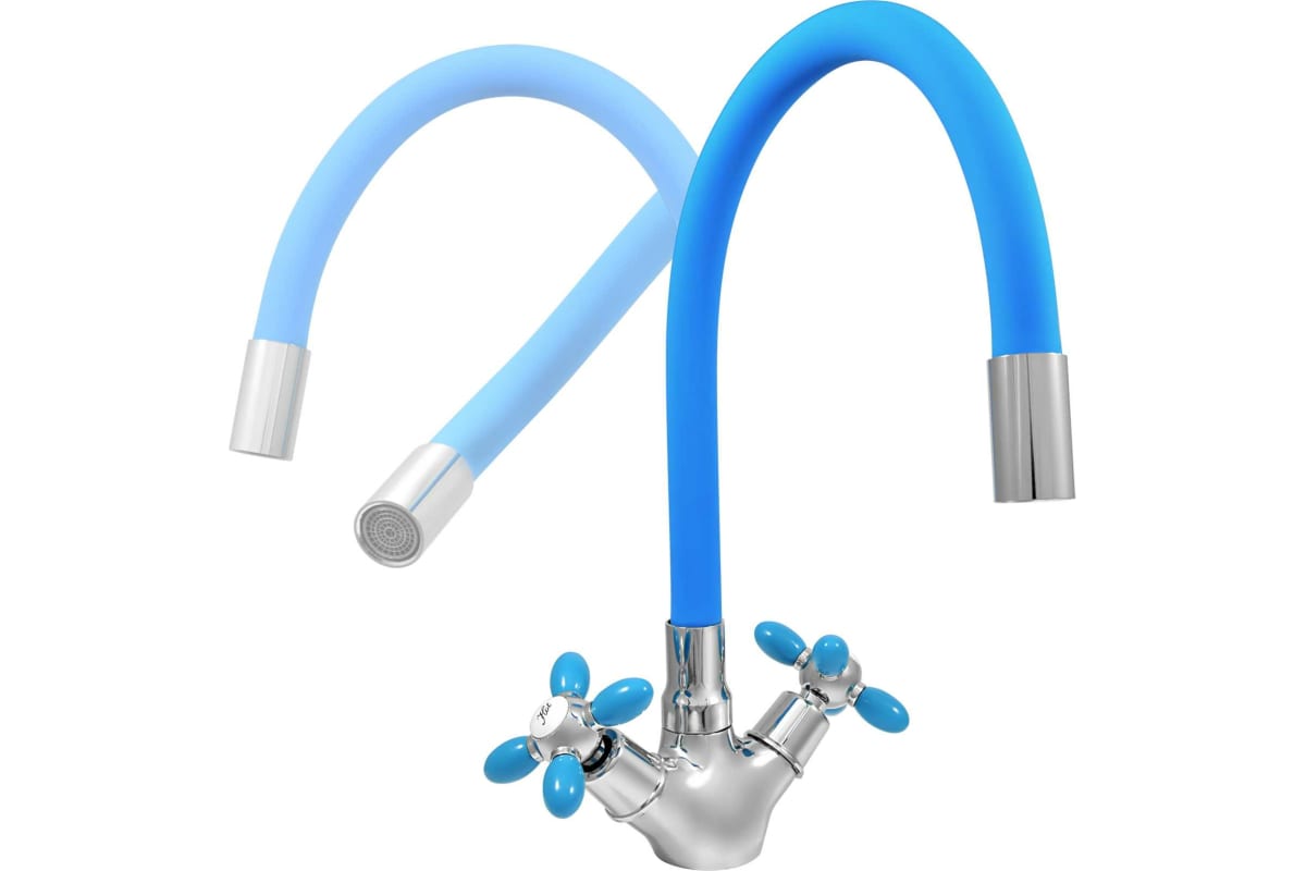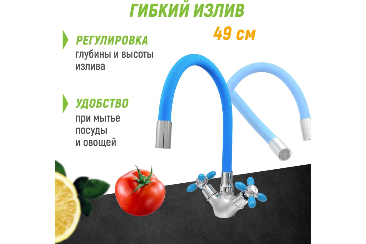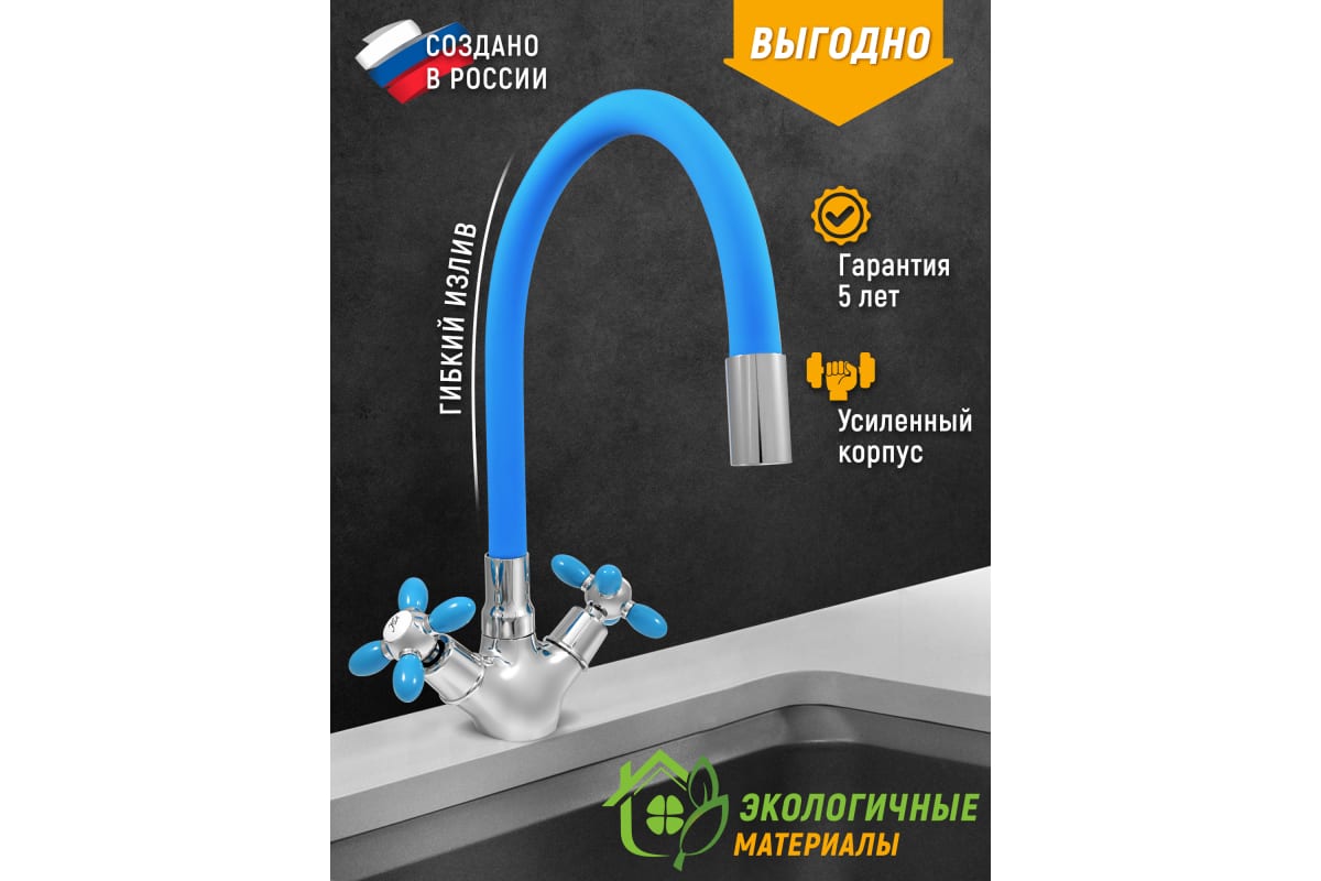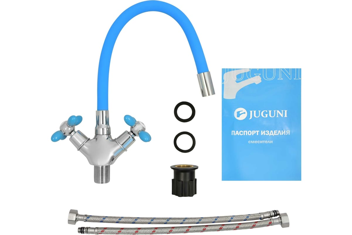 Смеситель для мойки Juguni двуручный с гибким силиконовым изливом (синий), креп. гайка, 0402.144 - это надежный смеситель, 5 лет гарантии. Он идеально подойдет к мойке и впишется в интерьер любой кухни.