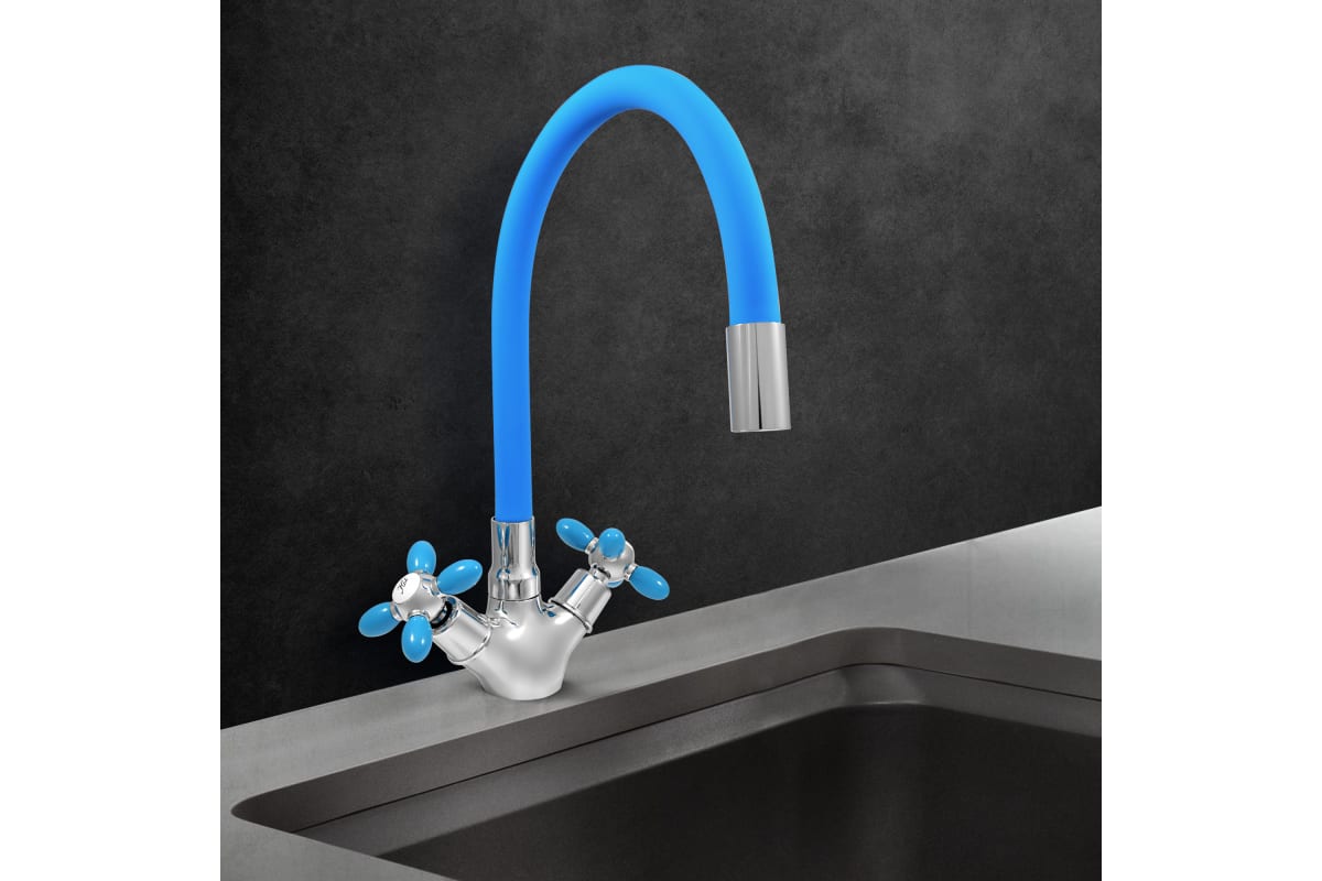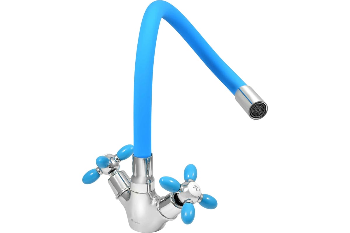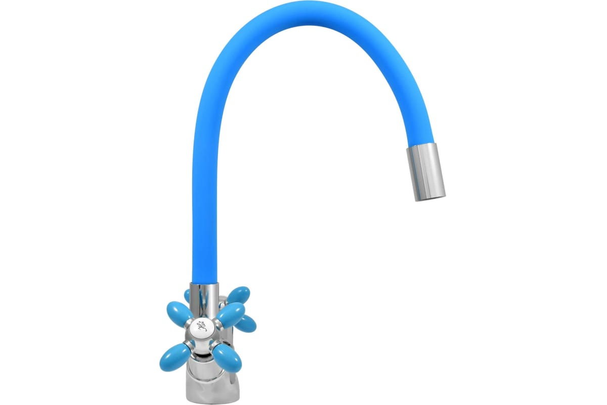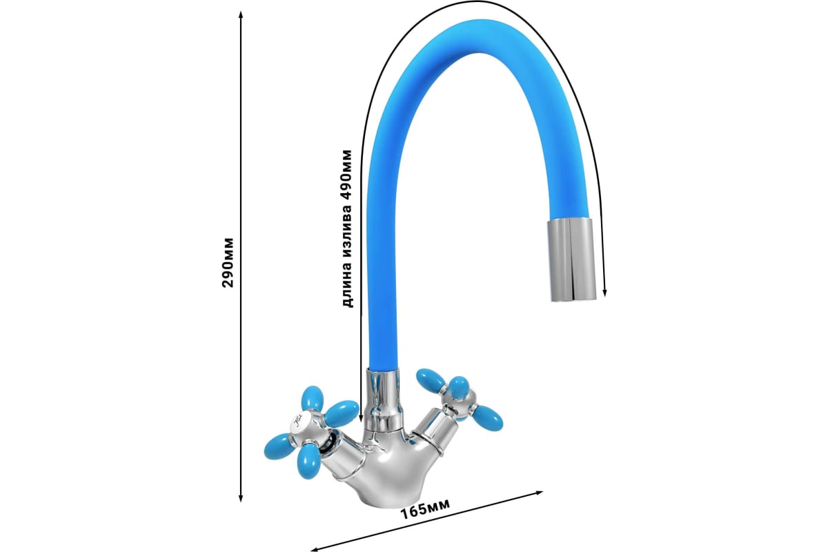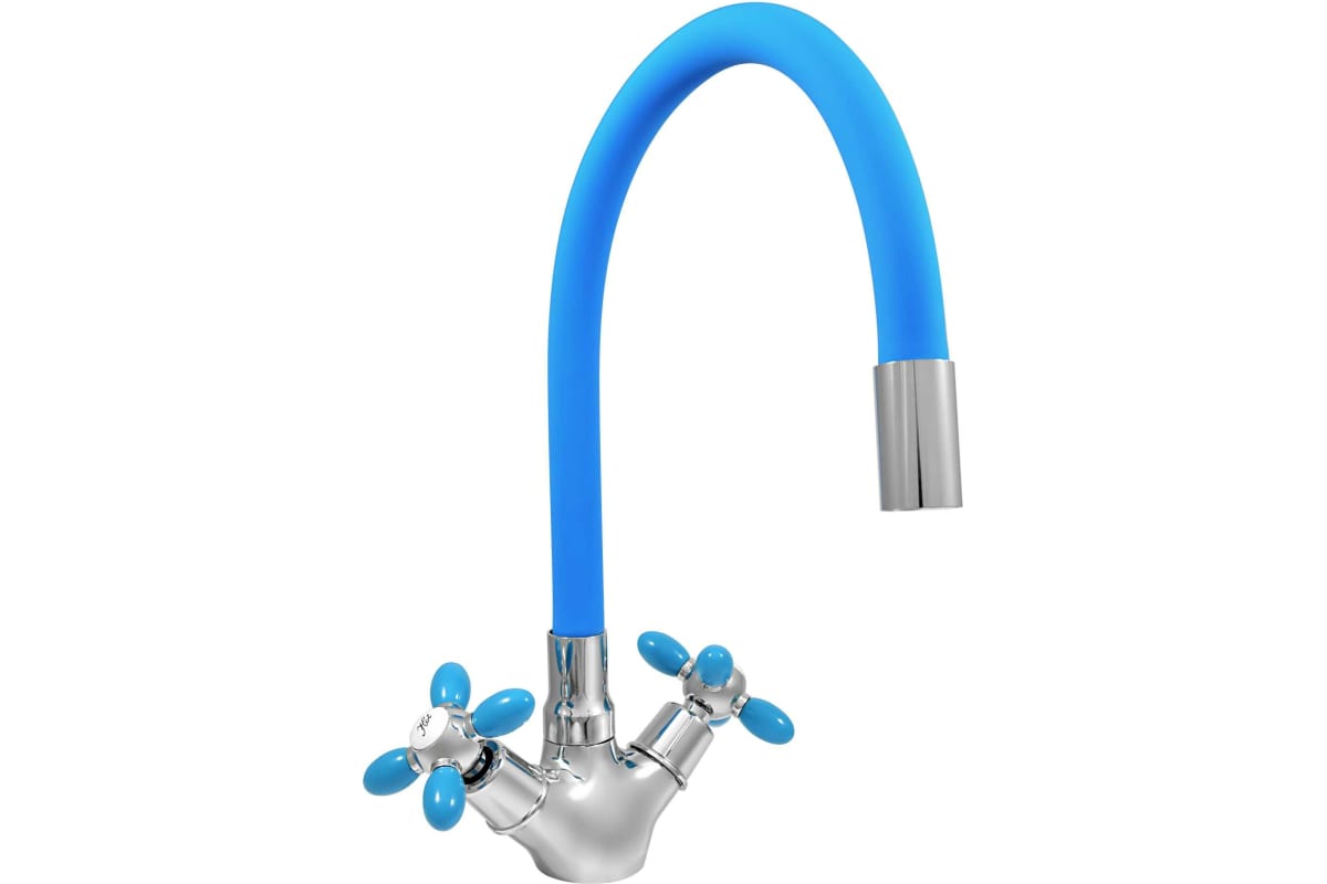 Смеситель для мойки Juguni двуручный с гибким силиконовым изливом (синий), креп. гайка, 0402.144 - это надежный смеситель, 5 лет гарантии. Он идеально подойдет к мойке и впишется в интерьер любой кухни.