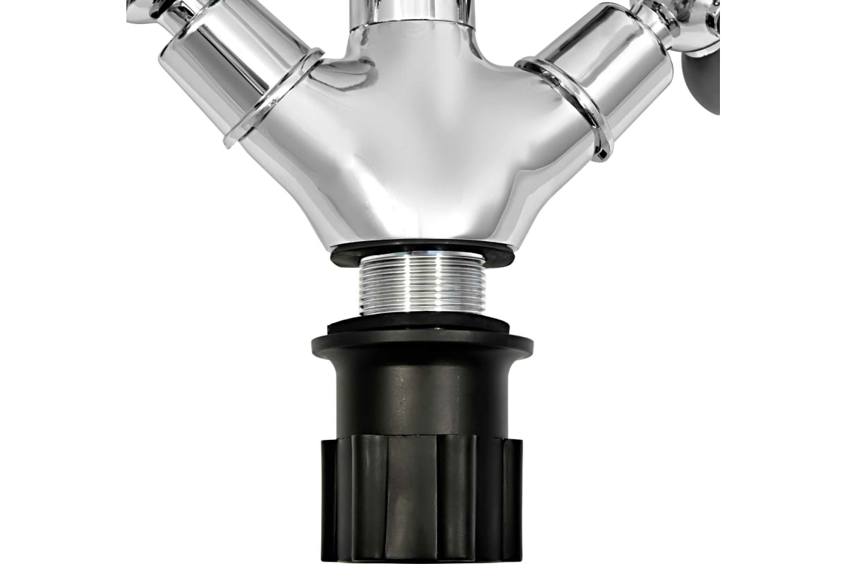 Смеситель для кухни (для раковины) сделан из прочного сплава алюминия с кремнием. В комплекте имеется гибкая подводка 35 см (штуцер, ниппель из латуни) и удобный крепеж гайка.