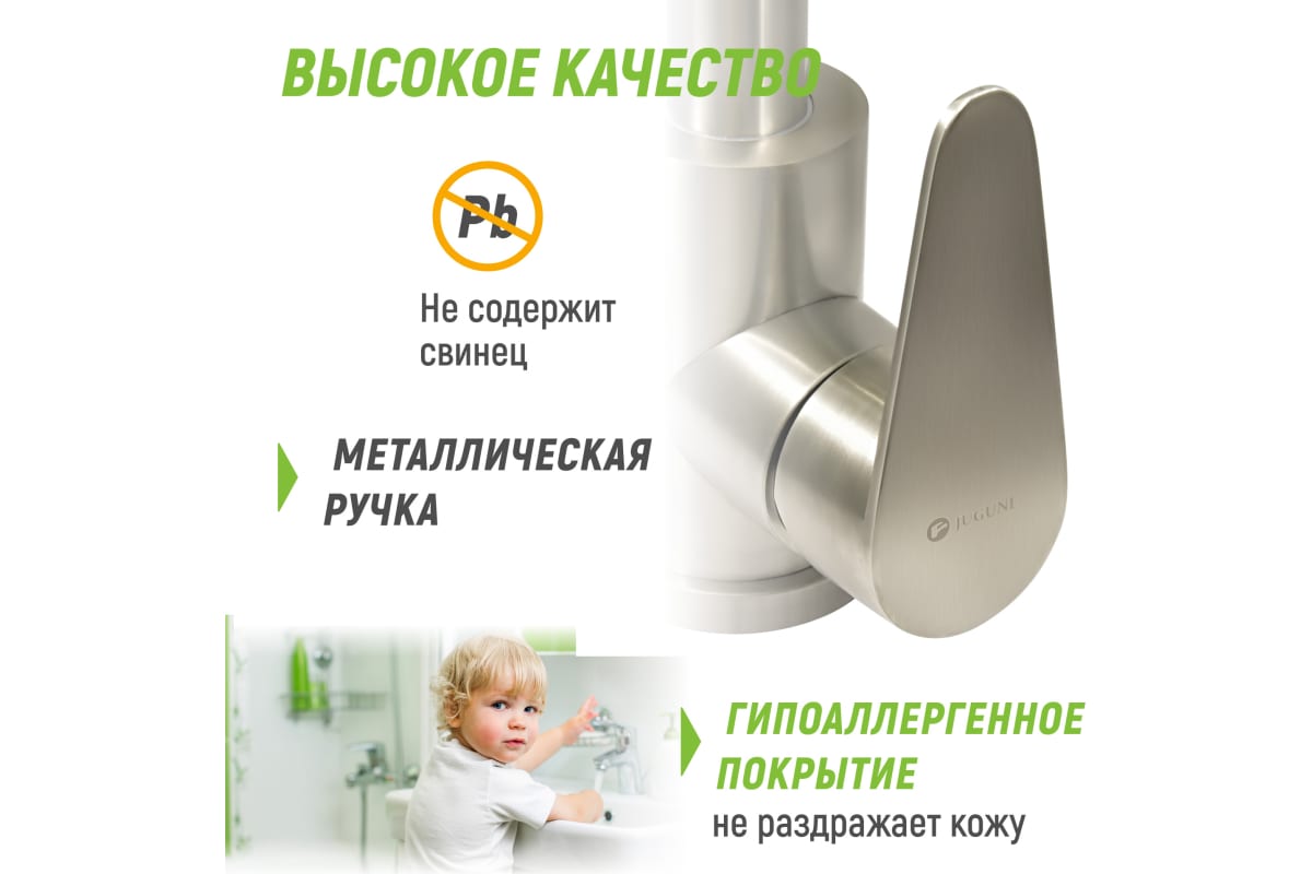Смеситель для кухни JUGUNI хромированный с высоким изливом 210 мм AISI304 0402.169