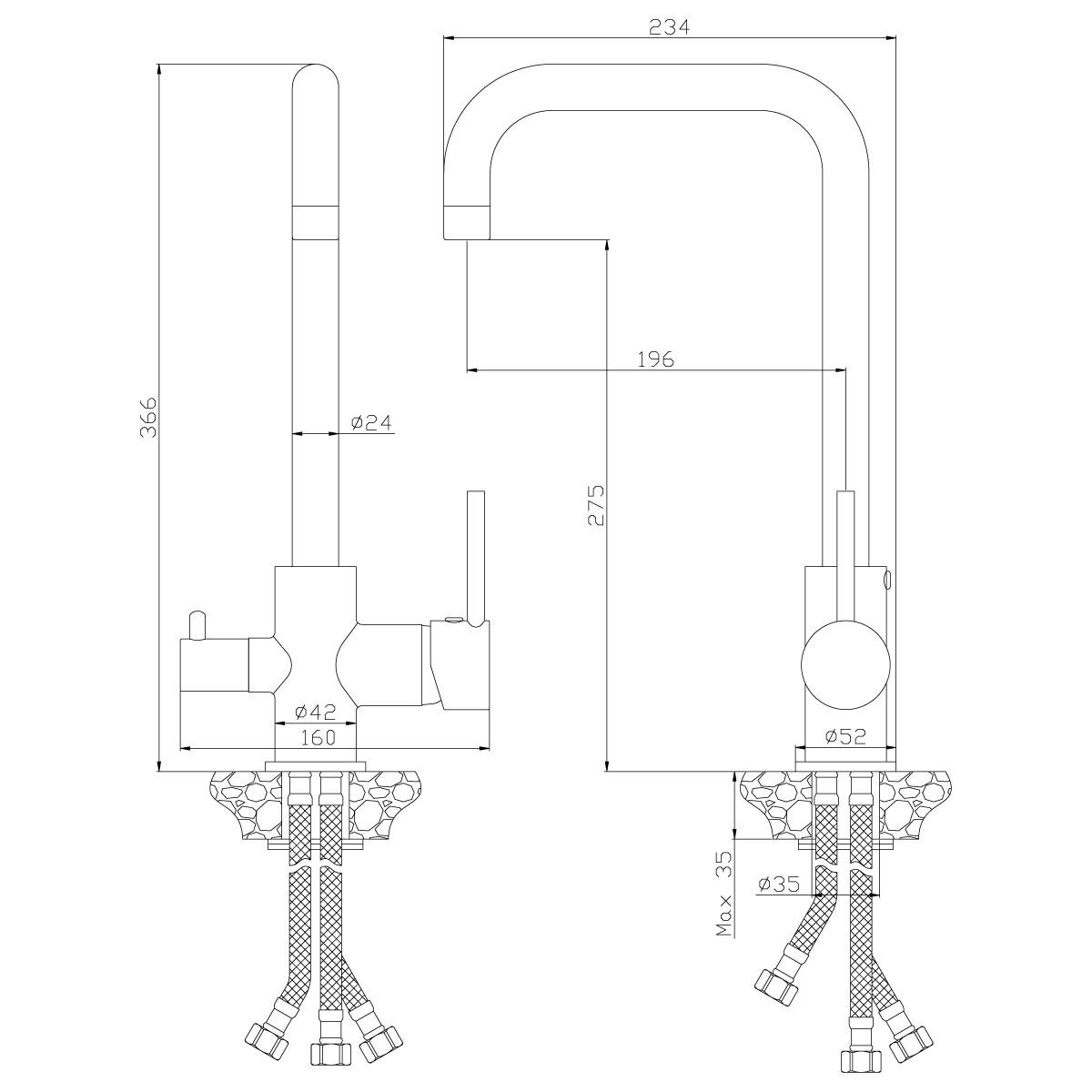 Смеситель для кухни ROS-KA хром с подключением к фильтру с питьевой водой 196 мм