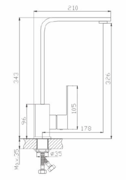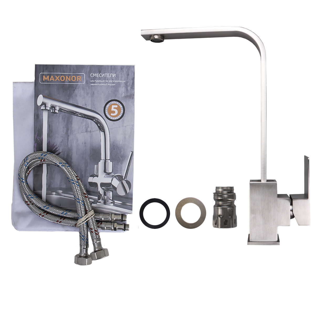Смеситель для кухни MAXOR сатин с высоким изливом 350 мм 70803
