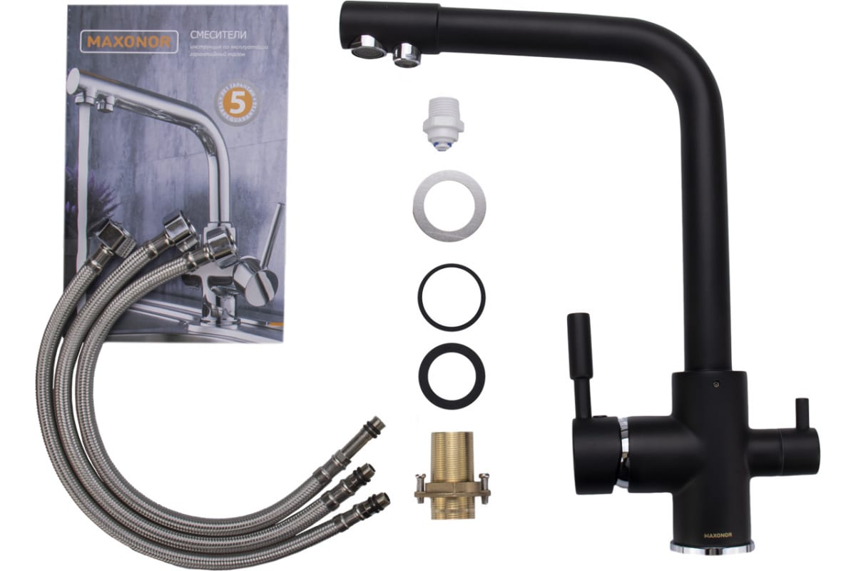 Смеситель для кухни MAXOR черный с подключением к фильтру с питьевой водой 4352-7