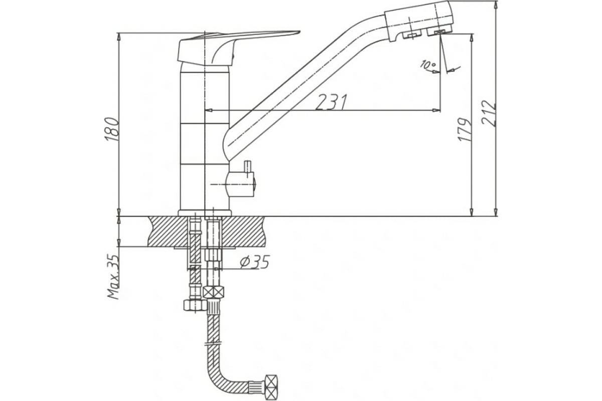Смеситель для кухни HAIBA хром с подключением к фильтру с питьевой водой HB4304