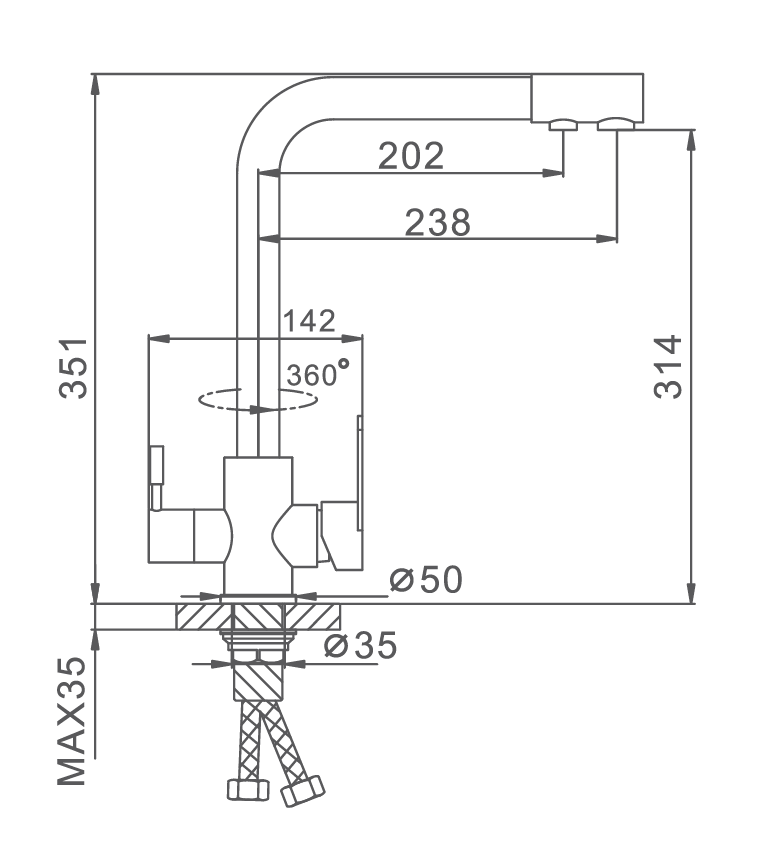Высота смесителя - 351 мм