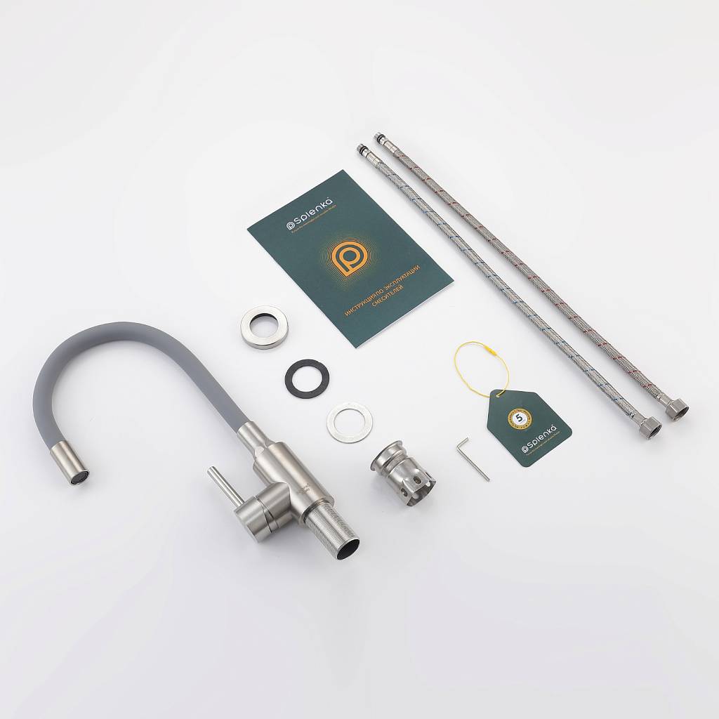 Смеситель для кухни с гибким изливом Splenka S201.4407.05, оснащен одной рукоятью чтобы регулировать воду. Отличается удобным управлением и стабильностью на протяжении работы. Сеточка поможет отфильтровать примеси и сэкономит более 5 кубов воды в течение года. Кран фиксируется на раковине или столешнице посредством гайки. Она надежно прижимает его к поверхности, закручиваясь с другой стороны отверстия. Гибкий излив этой модели обладает эффектом памяти. В процессе движения излива на необходимое расстояние в любой плоскости фиксируется его положение. При установке модели достаточно, если в умывальнике или раковине находится всего одно отверстие под прибор. Как правило, подобный подход гарантирует легкий и быстрый монтаж