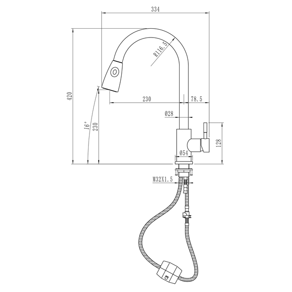 Смеситель для кухни MIXLINE 35k MLSS-0323 выдвижная лейка длина выдвиж. шланга 1,6м