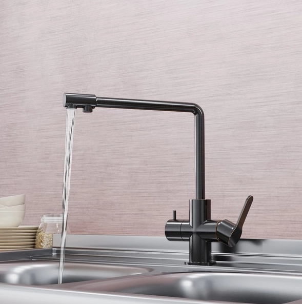 Широкий ассортимент представлен смесителями с рычажным управлением, моделями с гибким изливом и с выходом для питьевого фильтра.
