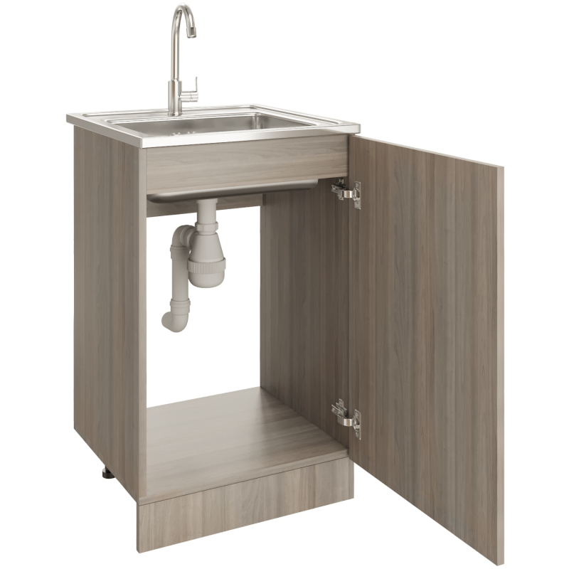 В ассортименте компании представлены тумбы, разделочные столы и навесные шкафы (с полками или сушилками на выбор).