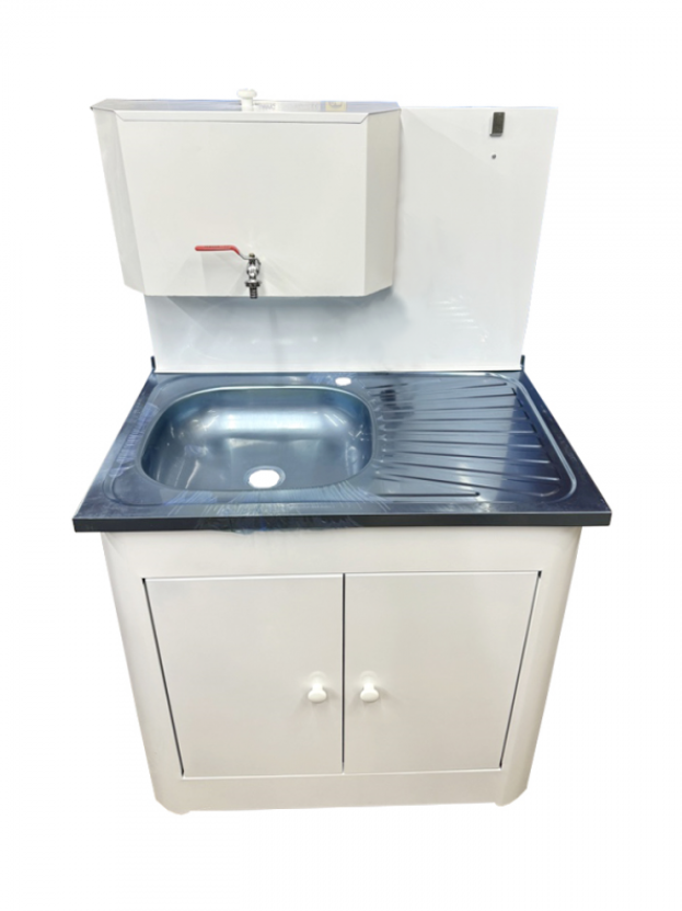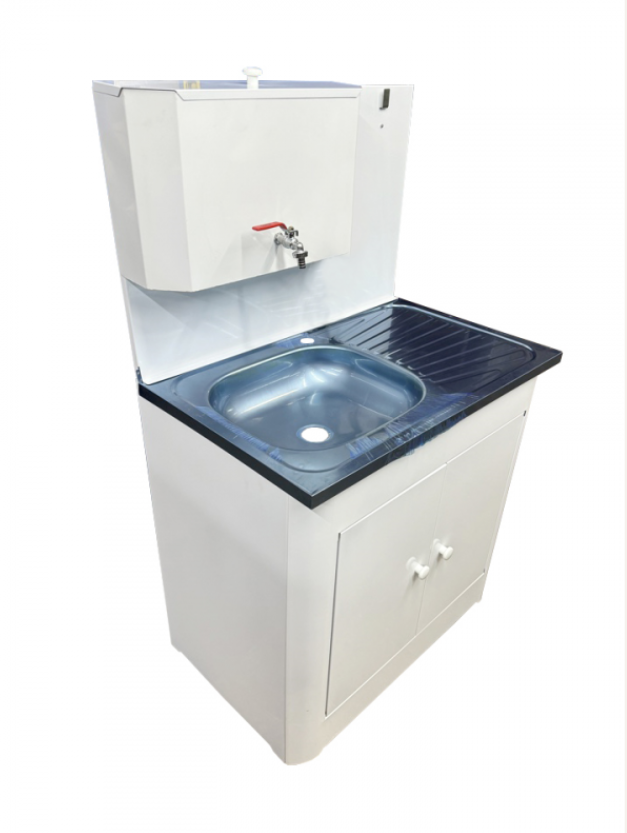 Умывальник дачный 2-х дверный металл. 500х800 мм белый (без ЭВН-20л + мойка нерж.+ кран металл.)