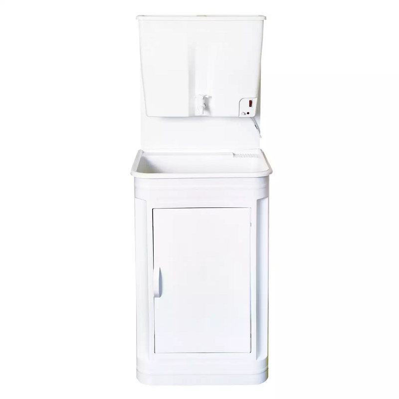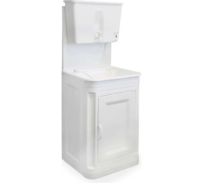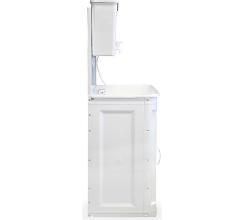 Умывальник оборудован наливным бачком с электронагревателем. Вместительность бака составляет 22 л. Конструкция выполнена из пластика.