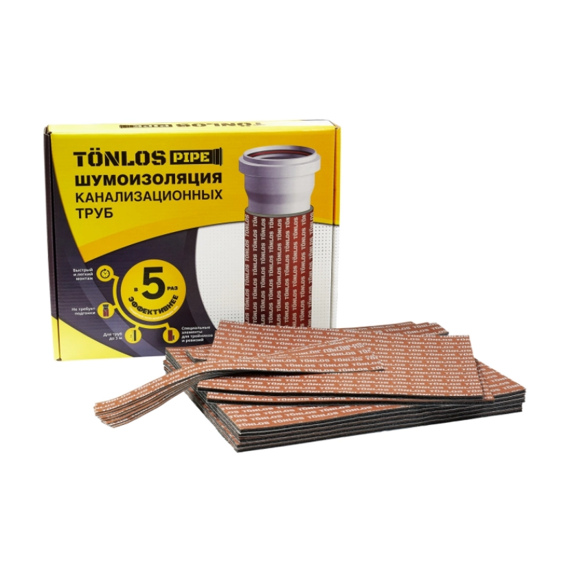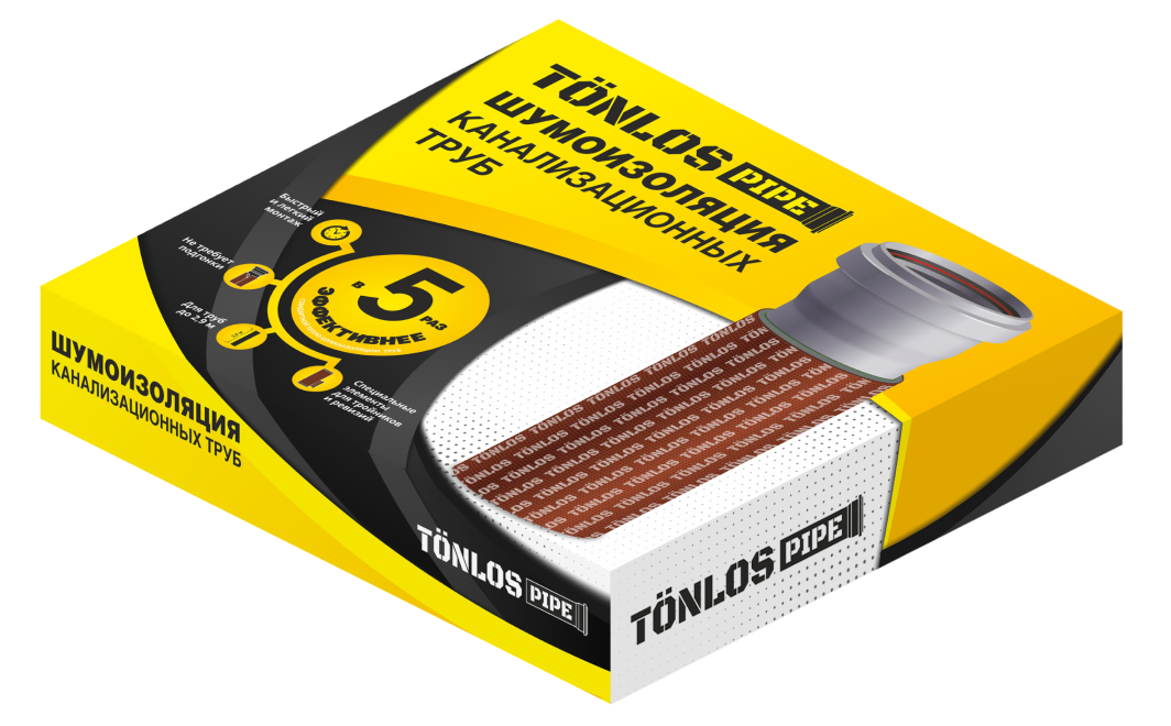 Шумоизоляция TONLOS PIPE поглощает лишние звуки канализации, снижает уровень шума в 3 раза.