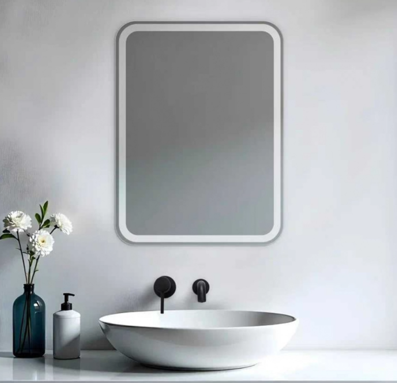 Прямоугольное зеркало с мягкими радиусными углами и элегантной пескоструйной окантовкой. Сдержанный стиль и современный дизайн.