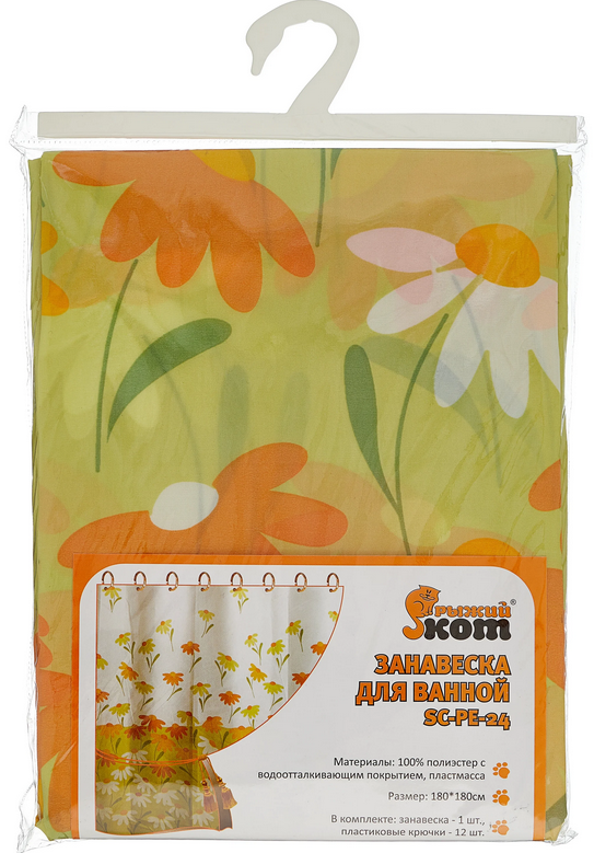 Штора для ванной комнаты "РЫЖИЙ КОТ" ромашки 180х180 см полиэстер SC-PE-24 (545) 311954
