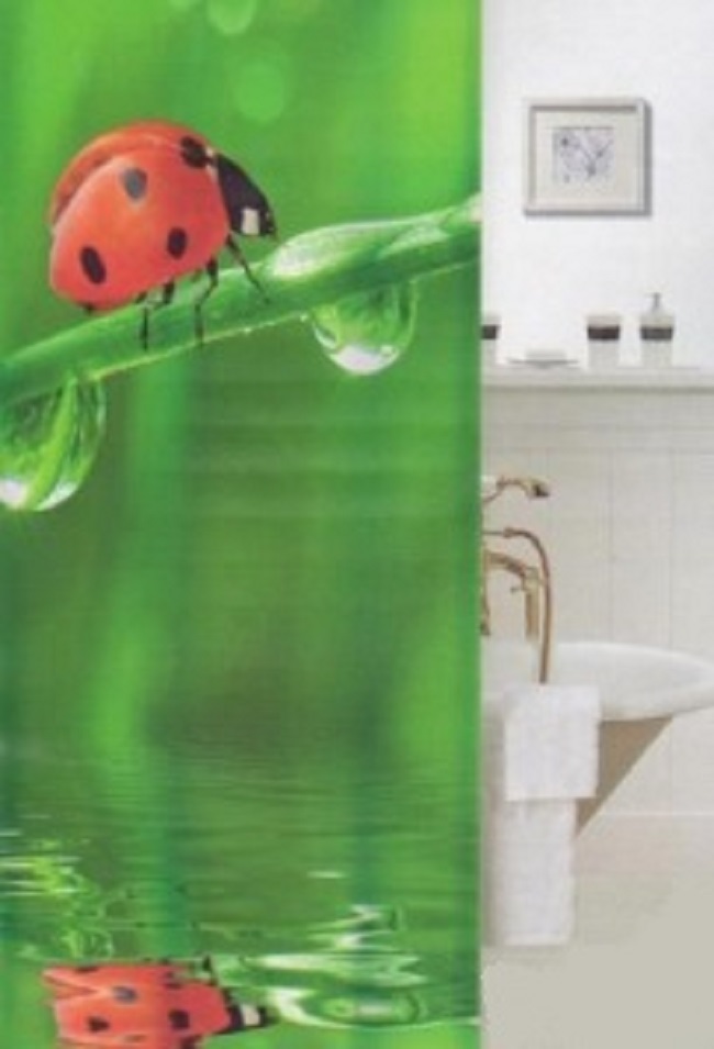 Штора для ванной комнаты ZALEL Фотопринт Lady beetle зеленый 180х180 см YX-2400 без колец