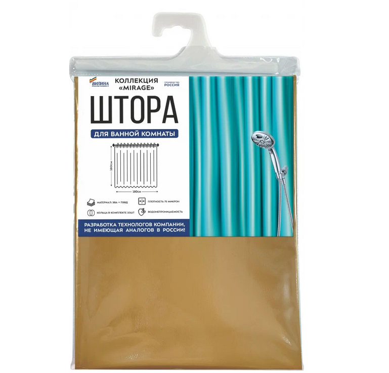 Штора водонепроницаемая для ванной комнаты и душа 180х180 см золотой перламутр. Российский производитель товаров для дома - вилина.