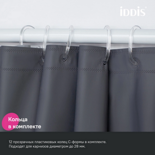 Штора для ванной комнаты IDDIS Promo тёмно-серая 180х200 см P03PE18i11