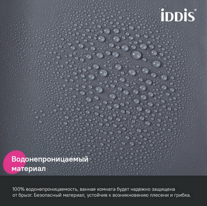 Однотонная непрозрачная штора для ванной IDDIS серии Promo продумана для максимально комфортного и удобного использования.