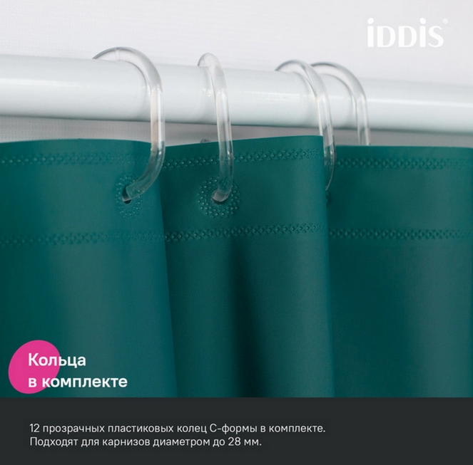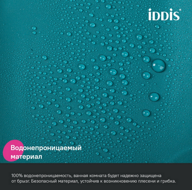 Однотонная непрозрачная штора для ванной IDDIS серии Promo продумана для максимально комфортного и удобного использования.