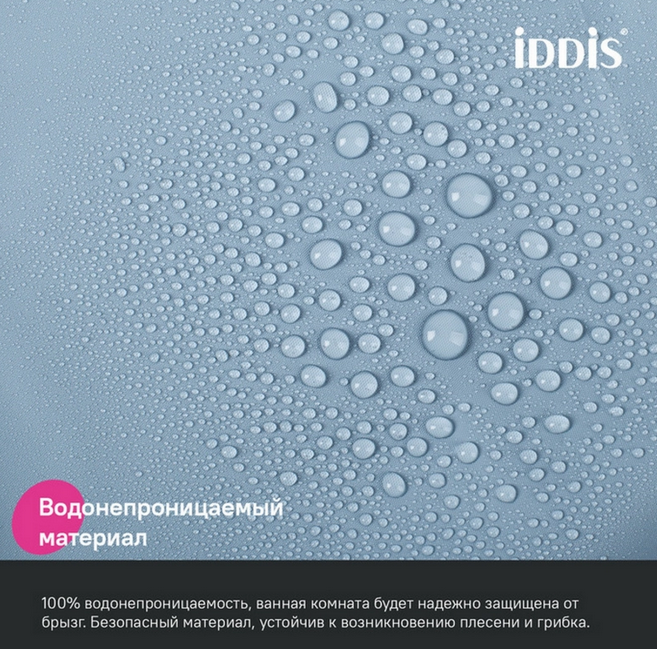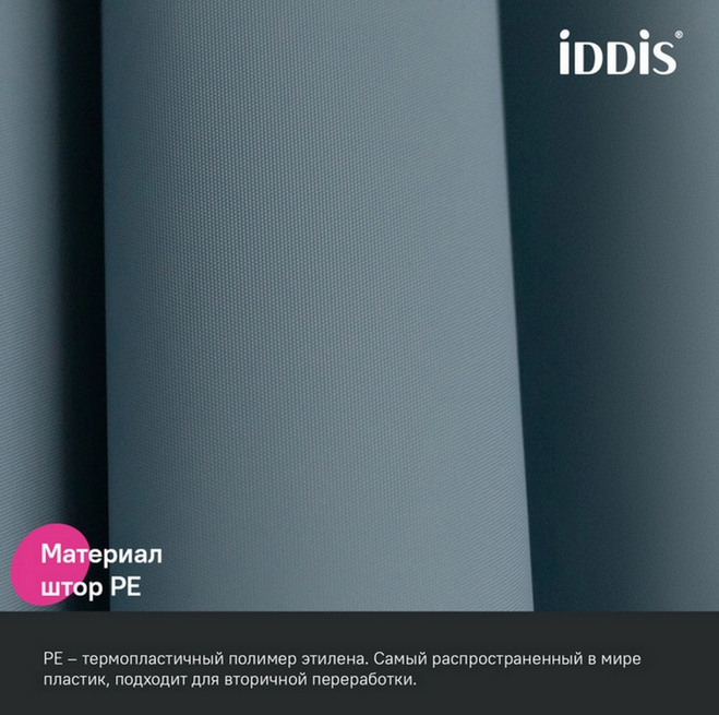Однотонная непрозрачная штора для ванной IDDIS серии Promo продумана для максимально комфортного и удобного использования.