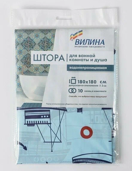 Штора для ванной комнаты "ВИЛИНА" голубая гавань 180х180 см 6984-003-blue