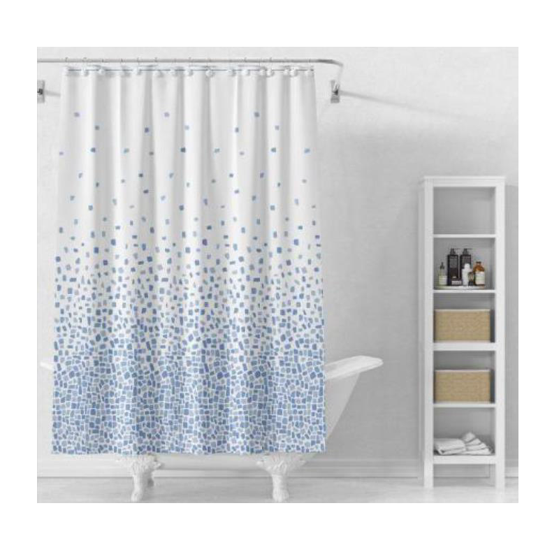 Штора для ванны и душа изготовлена из высококачественной водонепроницаемой ткани PEVA. Она обладает отличной водостойкостью, приятна на ощупь и проста в использовании. Занавеска для ванной комнаты из этого материала не впитывает влагу, эластичная, приятная на ощупь, не имеет запаха. Штора практична и долговечна, прекрасно защищает ванну от брызг при принятии душа. 12 пластиковых колец. Размер 180см * 180см. Цвет: голубой узор