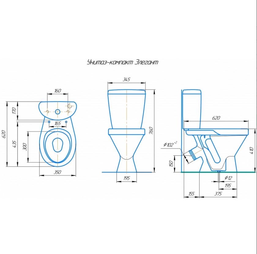 Унитаз-компакт ROSA "ЭЛЕГАНТ" коричневый кос. вып. ниж.подвод (арматура+сиденье) 522623