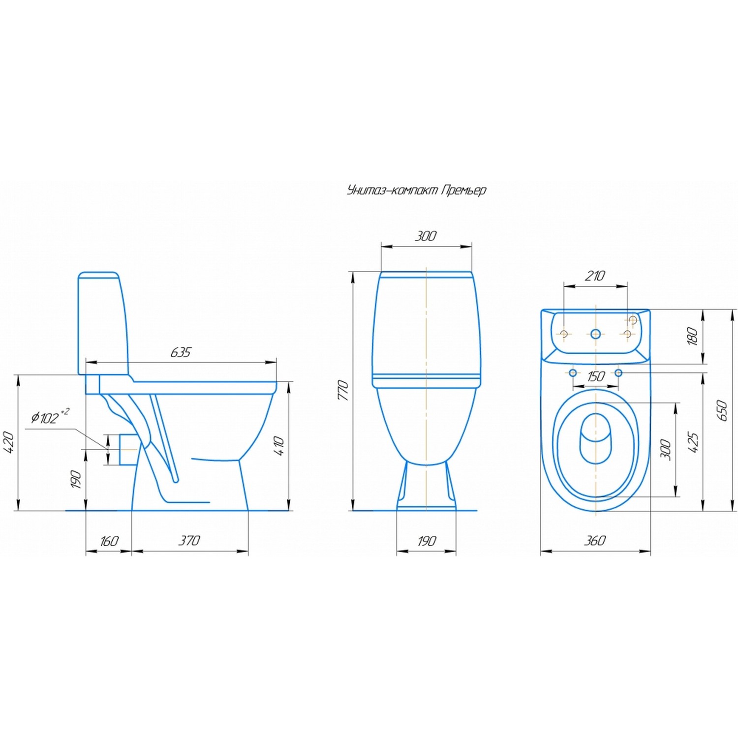 Унитаз-компакт "ПРЕМЬЕР" ROSA синий декор ниж. подв. прямой выпуск с арматурой и сиденьем (г. Киров)