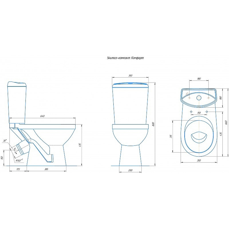 Унитаз-компакт "КОМФОРТ" ROSA синий кракелюр косой выпуск с арматурой и сиденьем (г. Киров)