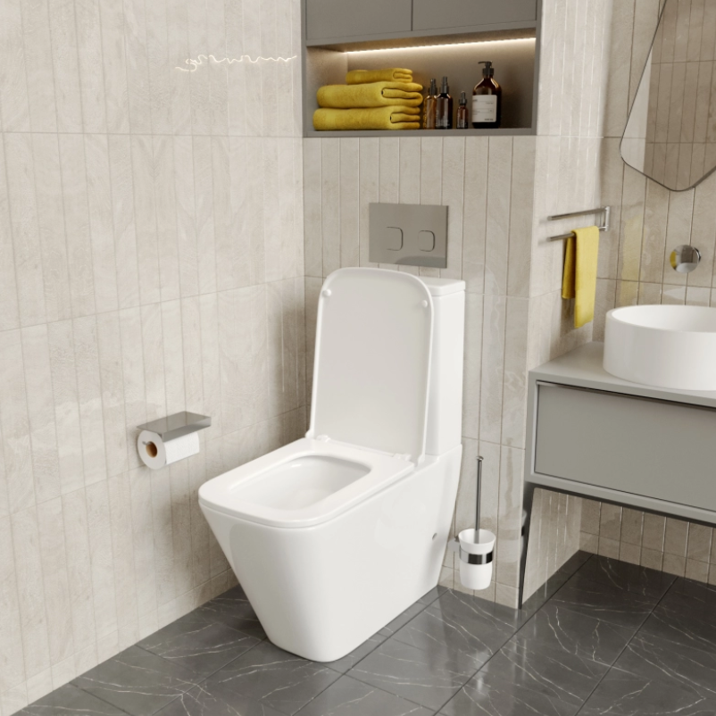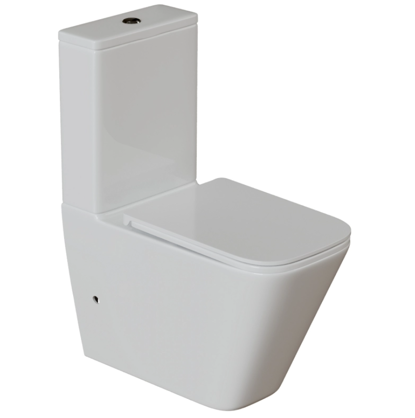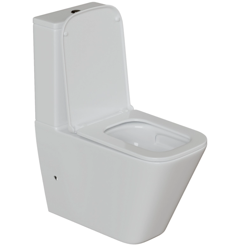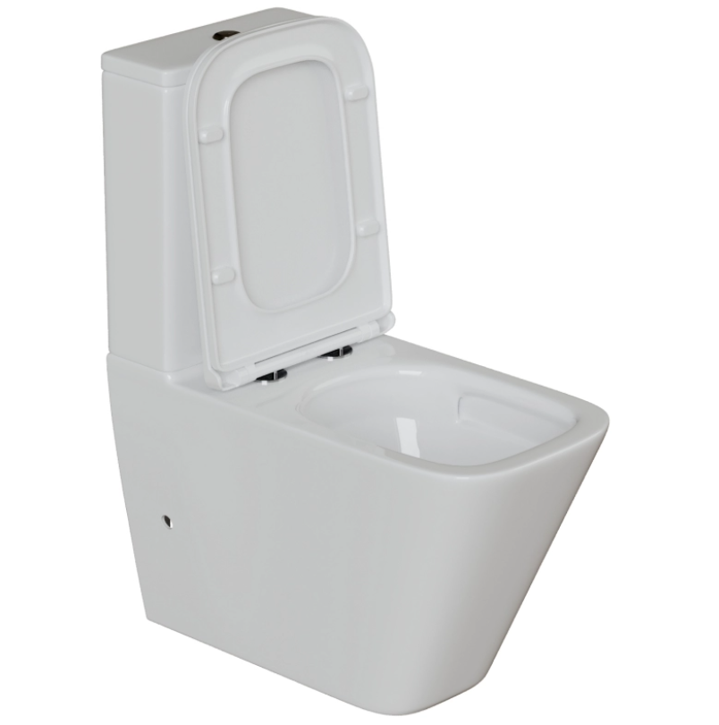 Унитаз-компакт "WAVE КВАДРАТНЫЙ ТОРНАДО" безободковый прямой выпуск с арматурой и сиденьем Микролифт