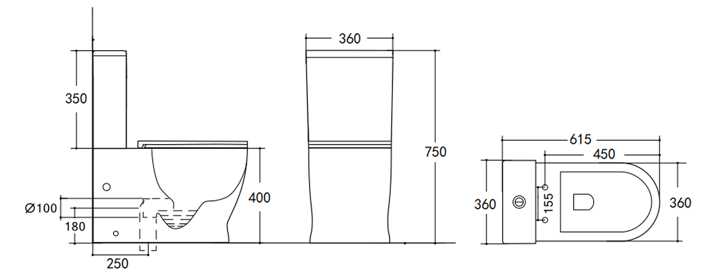 Унитаз-компакт HOLLER КОМБО безободковый 615х360х750мм, сиденье полипропилен, 2ч.
